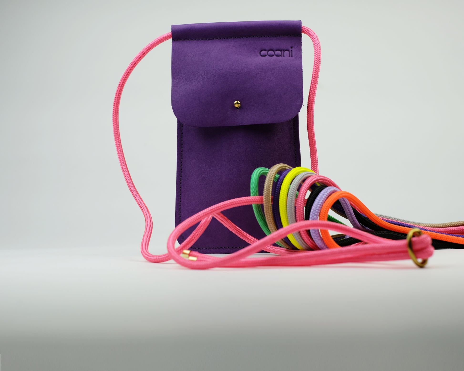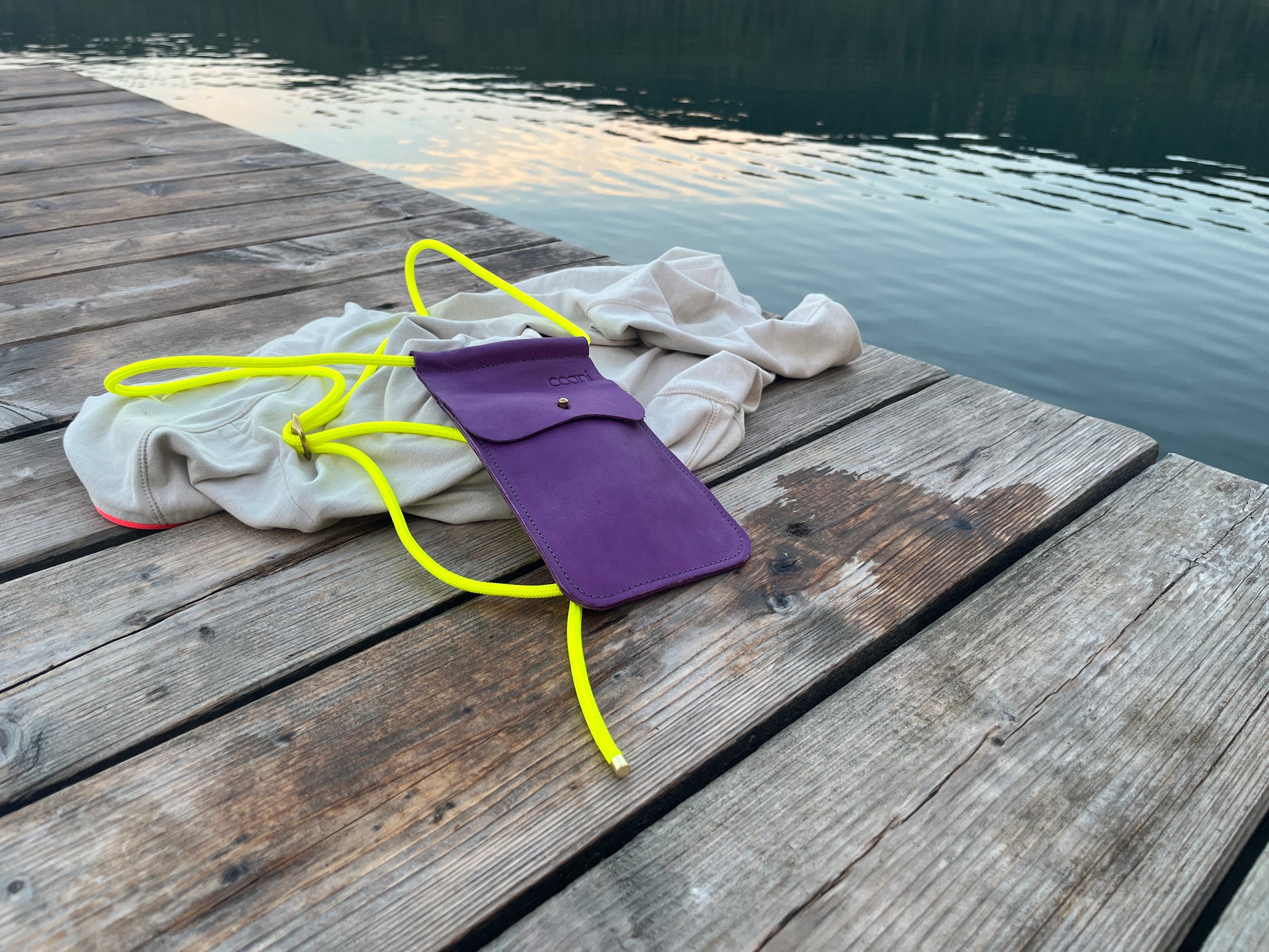 Loki besitzt kein Innenfutter und wird mit einem Metalknopf geschlossen. Mit Hilfe einer Metallschnalle kannst du sie ganz einfach stufenlos einstellen. Auf der Vorderseite ist unser Logo geprägt. Innen befinden sich zwei Steckfächer für dein Handy, Geld oder auch einen flachen Schlüssel.