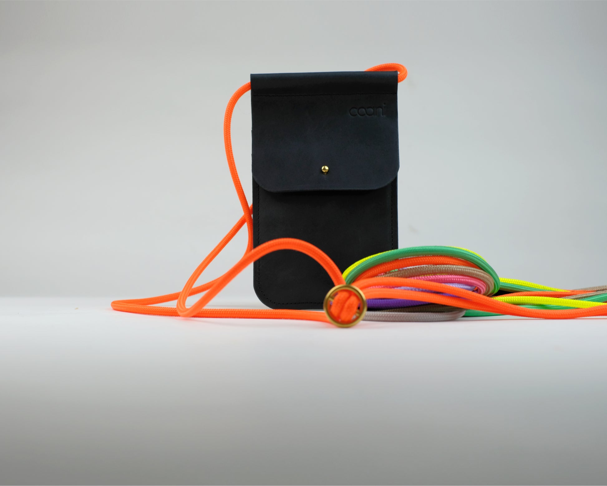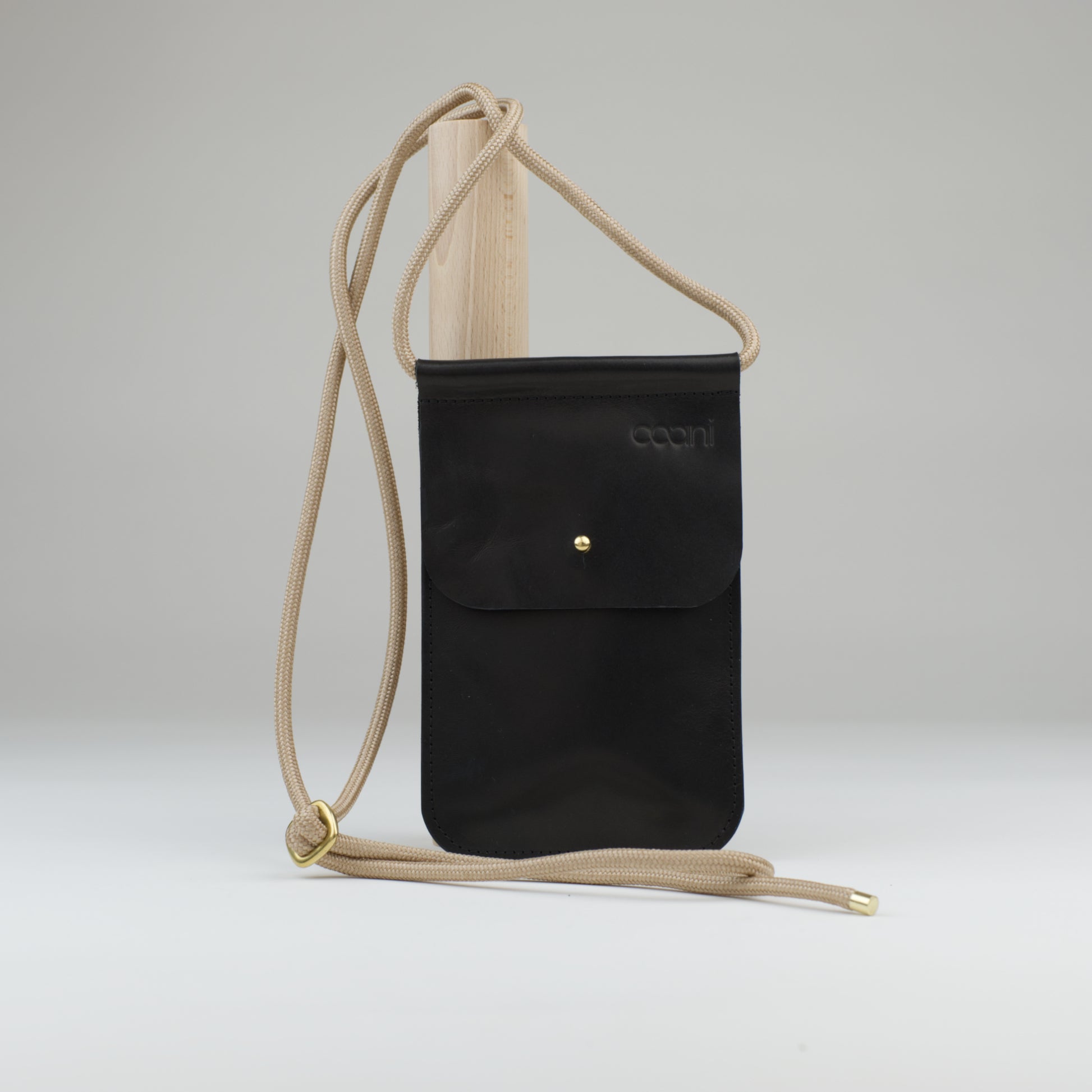 Loki besitzt kein Innenfutter und wird mit einem Metallknopf geschlossen. Mit Hilfe einer Metallschnalle kannst du sie ganz einfach stufenlos einstellen. Auf der Vorderseite ist unser Logo geprägt. Innen befinden sich zwei Steckfächer für dein Handy, Geld oder auch einen flachen Schlüssel.