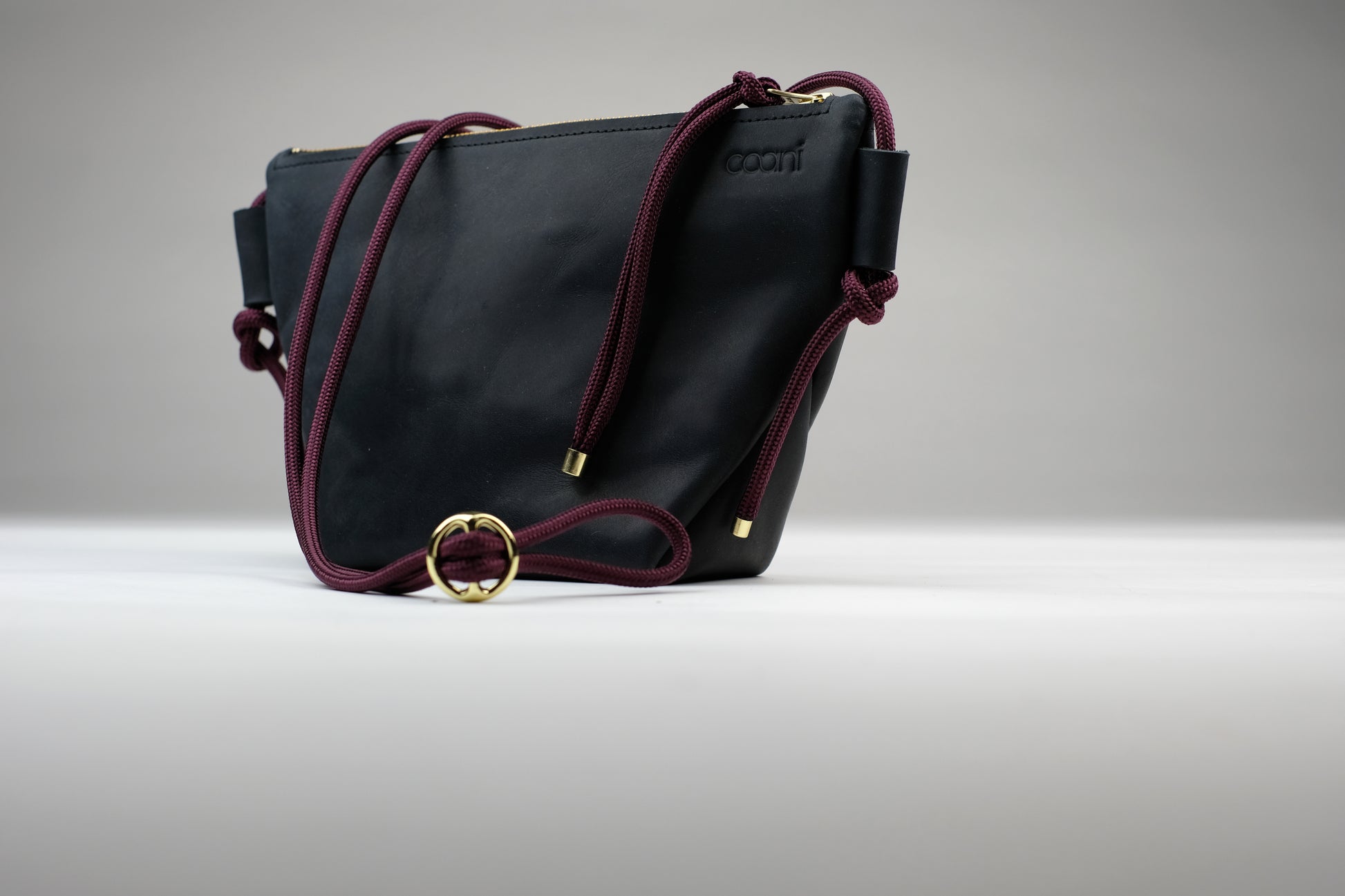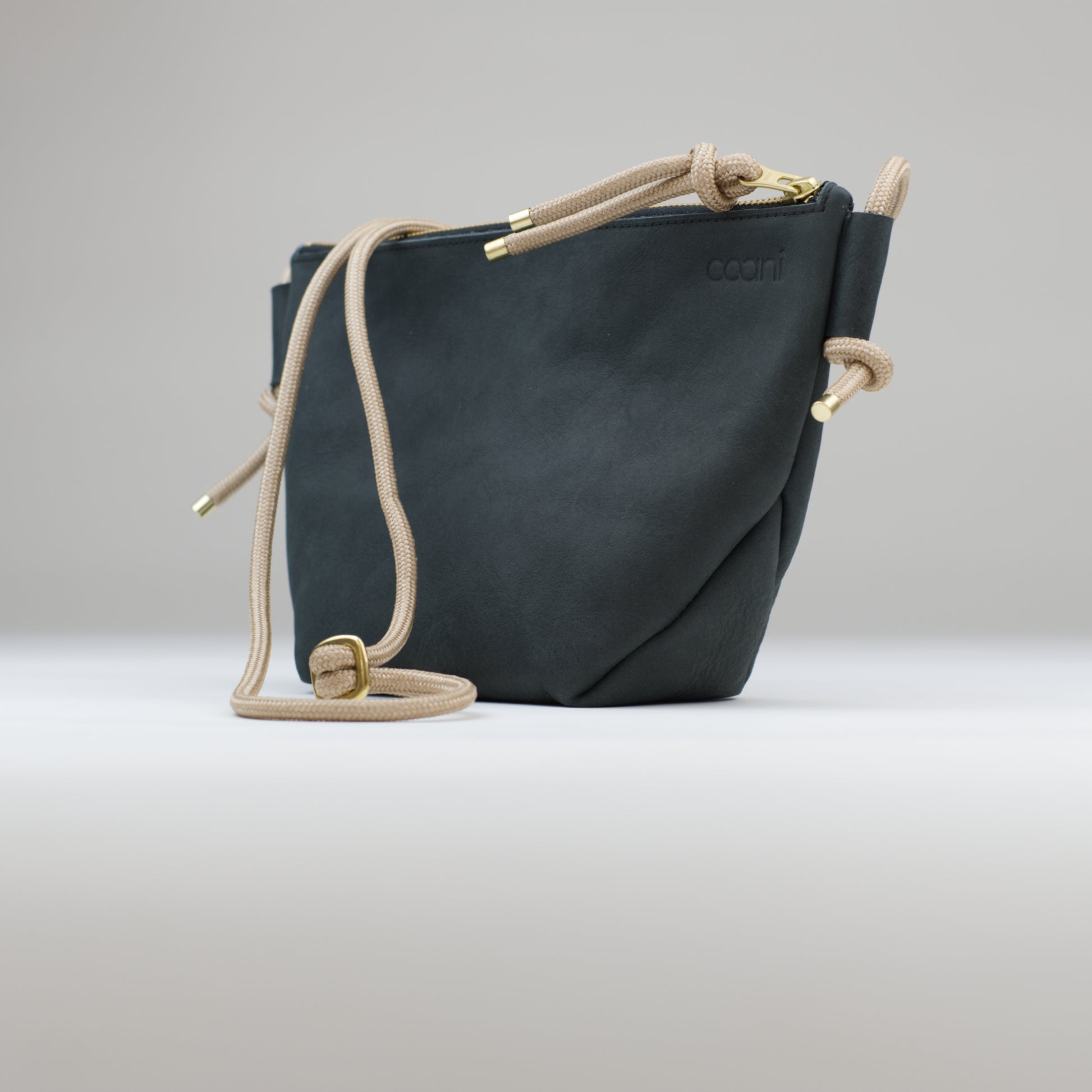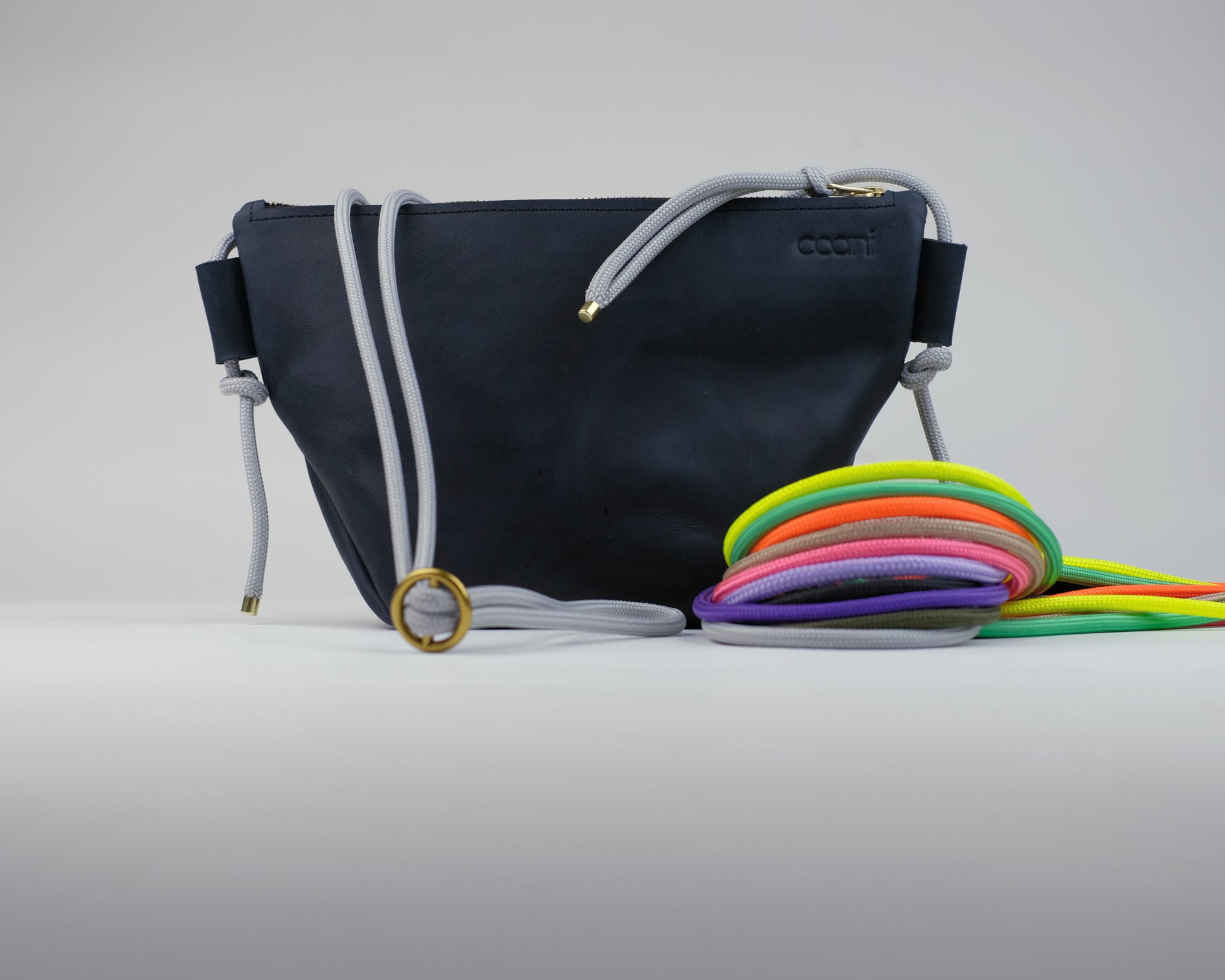 Suri besitzt kein Innenfutter und wird mit einem Reissverschluss geschlossen. Mit Hilfe einer Metallschnalle kannst du sie ganz einfach stufenlos in der Länge verstellen. Auf der Vorderseite ist unser Logo geprägt.