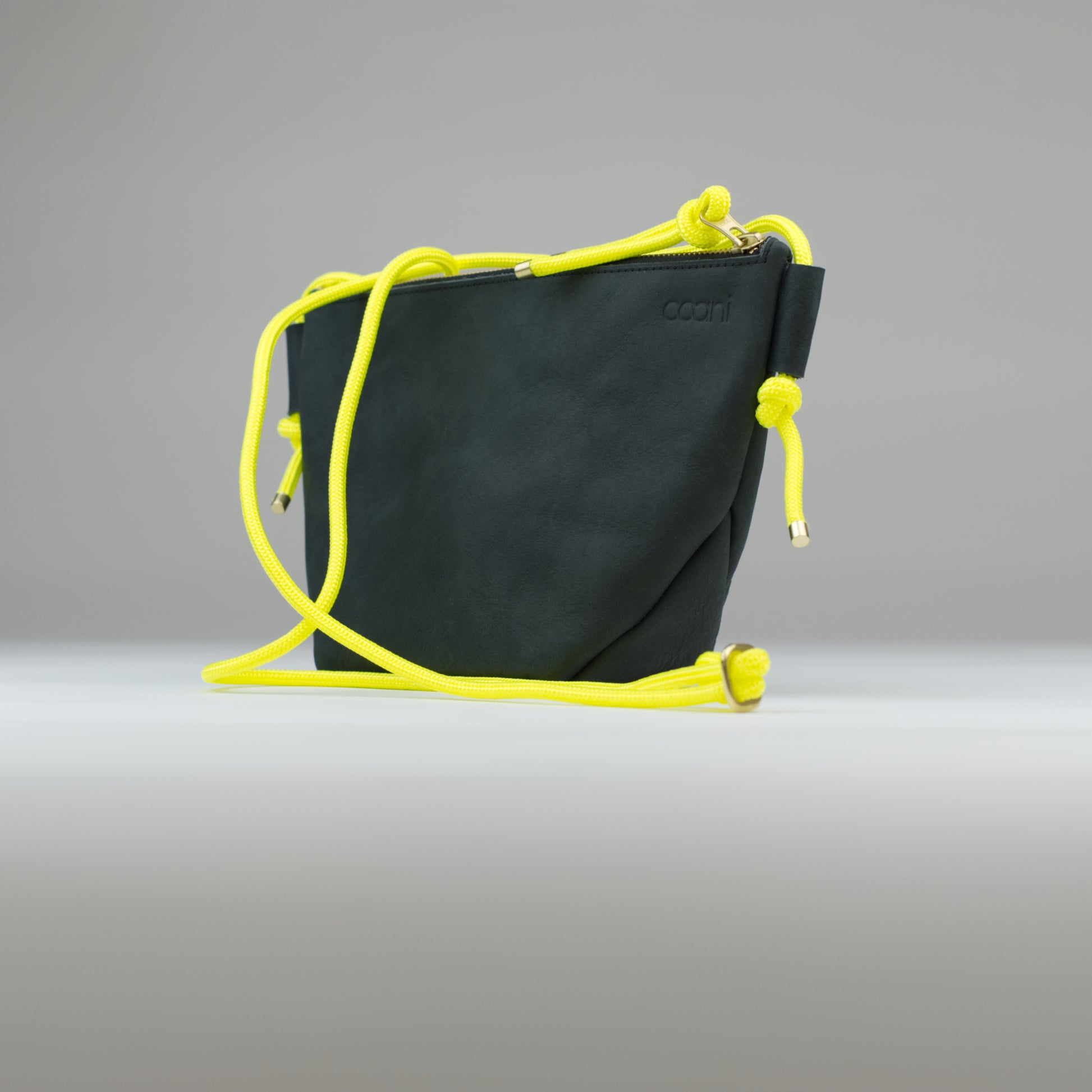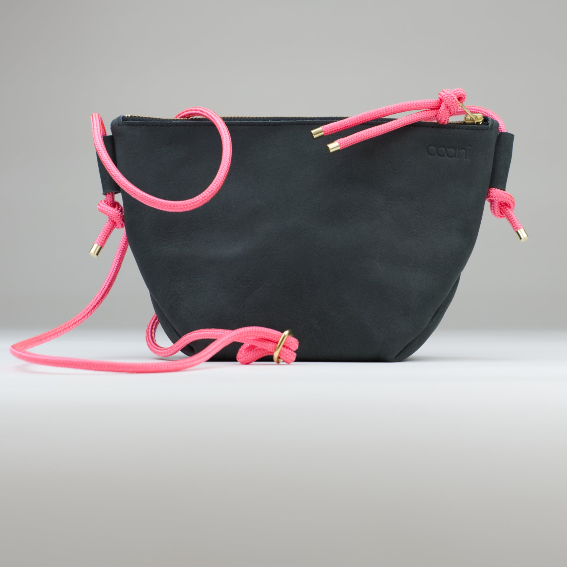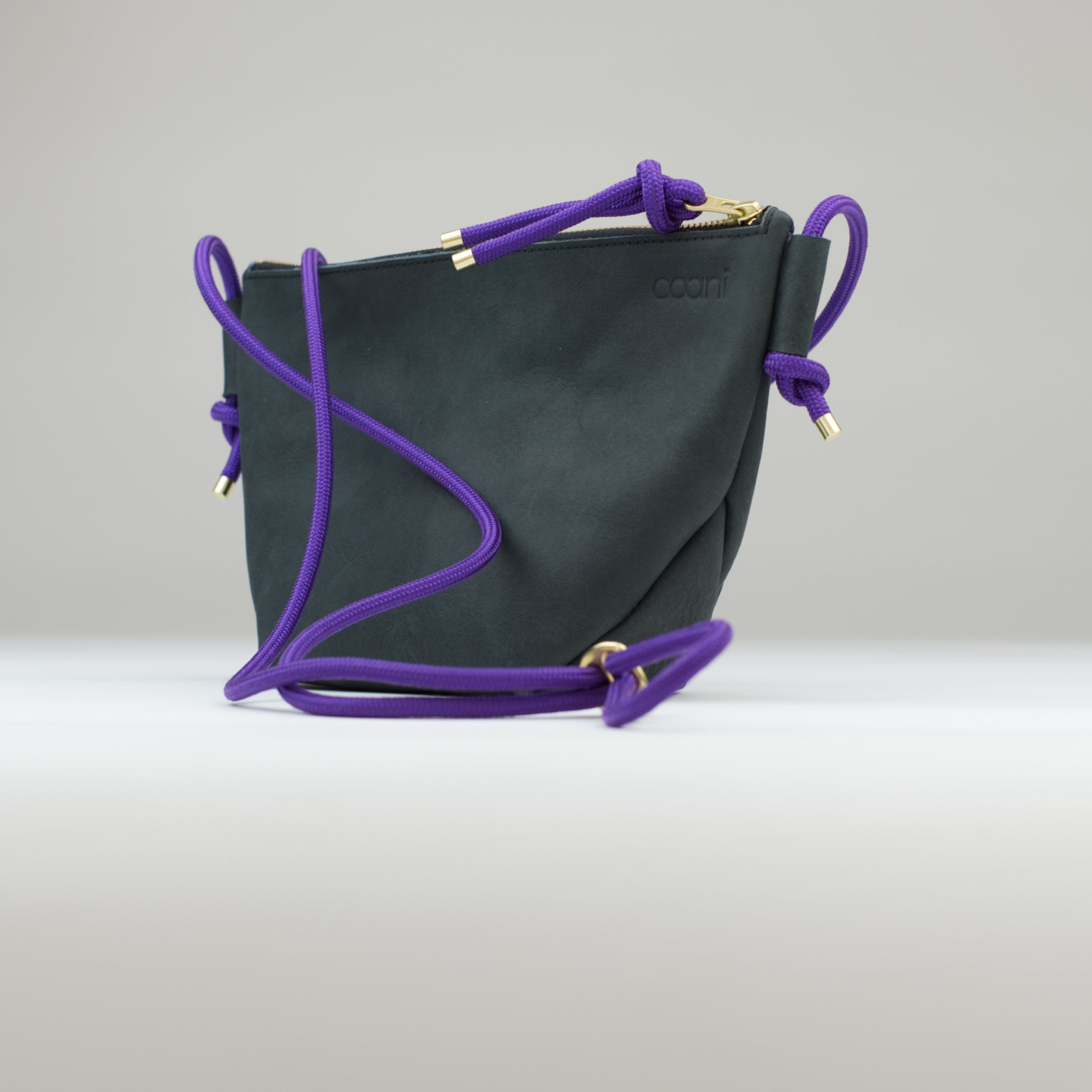 Suri besitzt kein Innenfutter und wird mit einem Reissverschluss geschlossen. Mit Hilfe einer Metallschnalle kannst du sie ganz einfach stufenlos in der Länge verstellen. Auf der Vorderseite ist unser Logo geprägt.