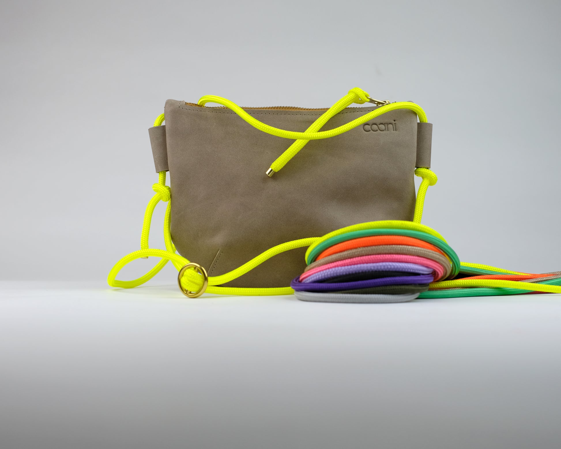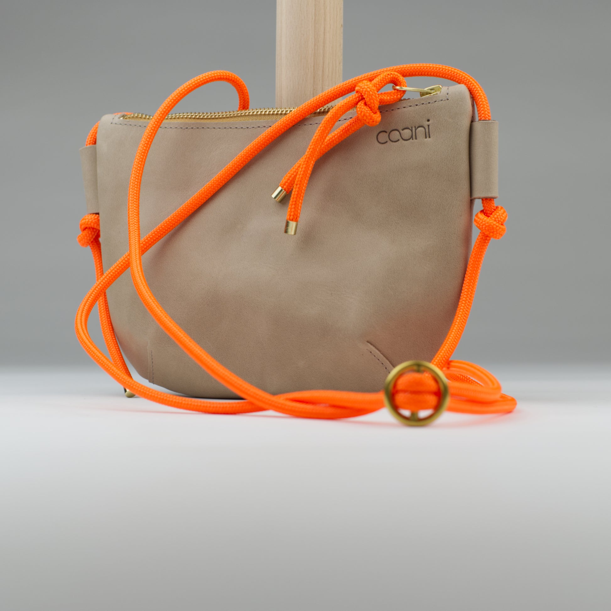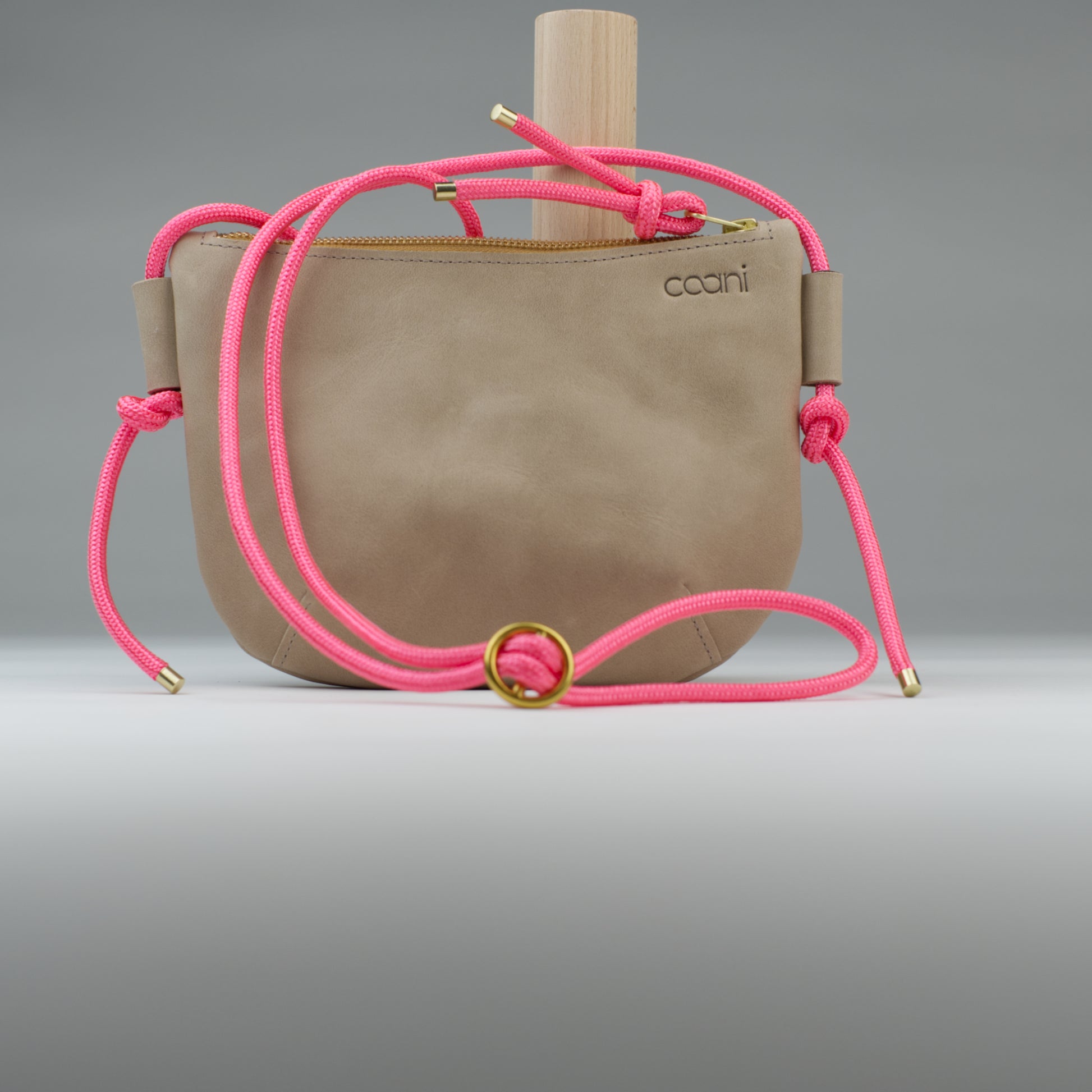 Tami besitzt kein Innenfutter und wird mit einem Reißverschluss geschlossen. Mit Hilfe einer Metallschnalle kannst du sie ganz einfach stufenlos in der Länge verstellen. Auf der Vorderseite ist unser Logo geprägt.