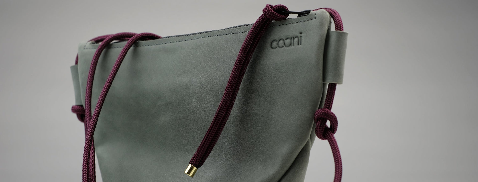 Tami besitzt kein Innenfutter und wird mit einem Reißverschluss geschlossen. Mit Hilfe einer Metallschnalle kannst du sie ganz einfach stufenlos in der Länge verstellen. Auf der Vorderseite ist unser Logo geprägt.