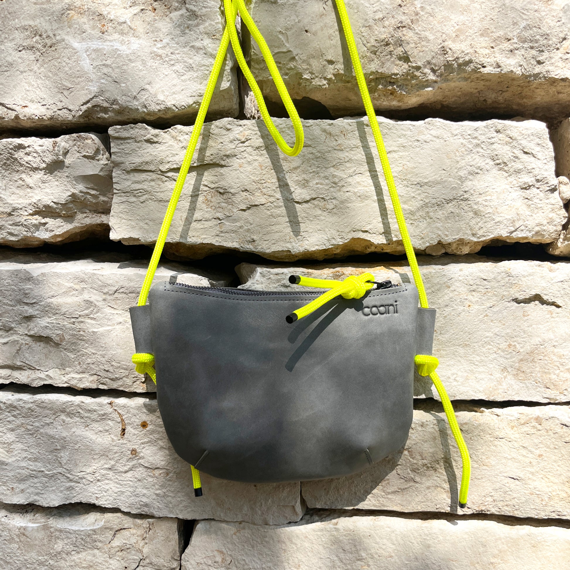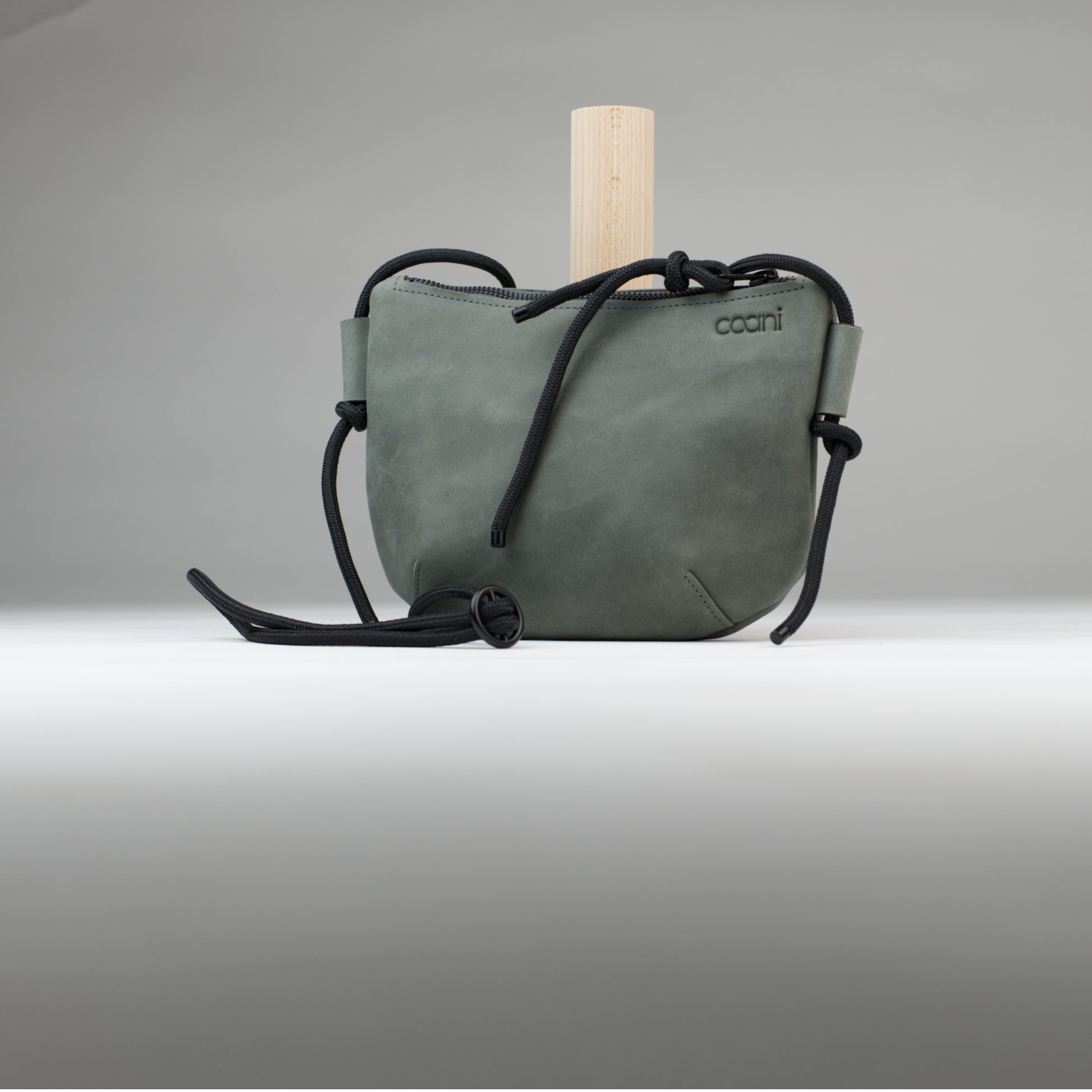Die Tasche wird aus einem hochwertigen, pflanzlich gegerbtem Leder gearbeitet. Dadurch erhält das Leder seinen Charakter und wird nicht zu einem austauschbaren Massenprodukt. Das graue Leder hat einen matte Oberfläche.