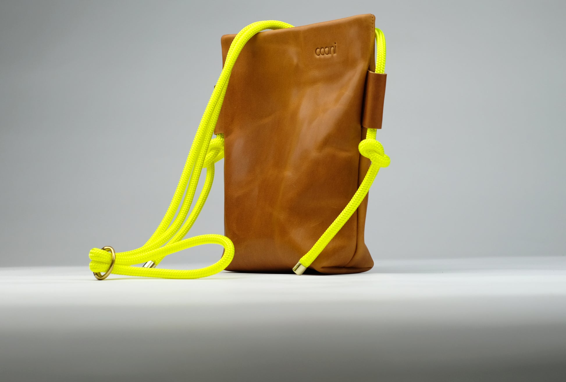 Die Tasche wird aus einem hochwertigen, pflanzlich gegerbtem Leder gearbeitet. Dadurch erhält das Leder seinen Charakter und wird nicht zu einem austauschbaren Massenprodukt. Das Cognacfarbene Leder hat einen feinen Glanz.