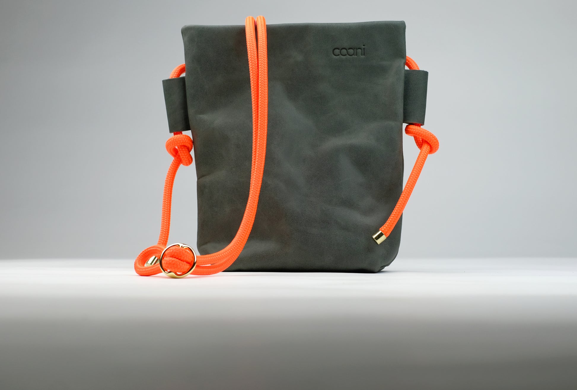 Tia besitzt kein Innenfutter und wird mit einem magnetischen Verschluss geschlossen. Mit Hilfe einer Metallschnalle kannst du sie ganz einfach stufenlos in der Länge verstellen. Auf der Vorderseite ist unser Logo geprägt.